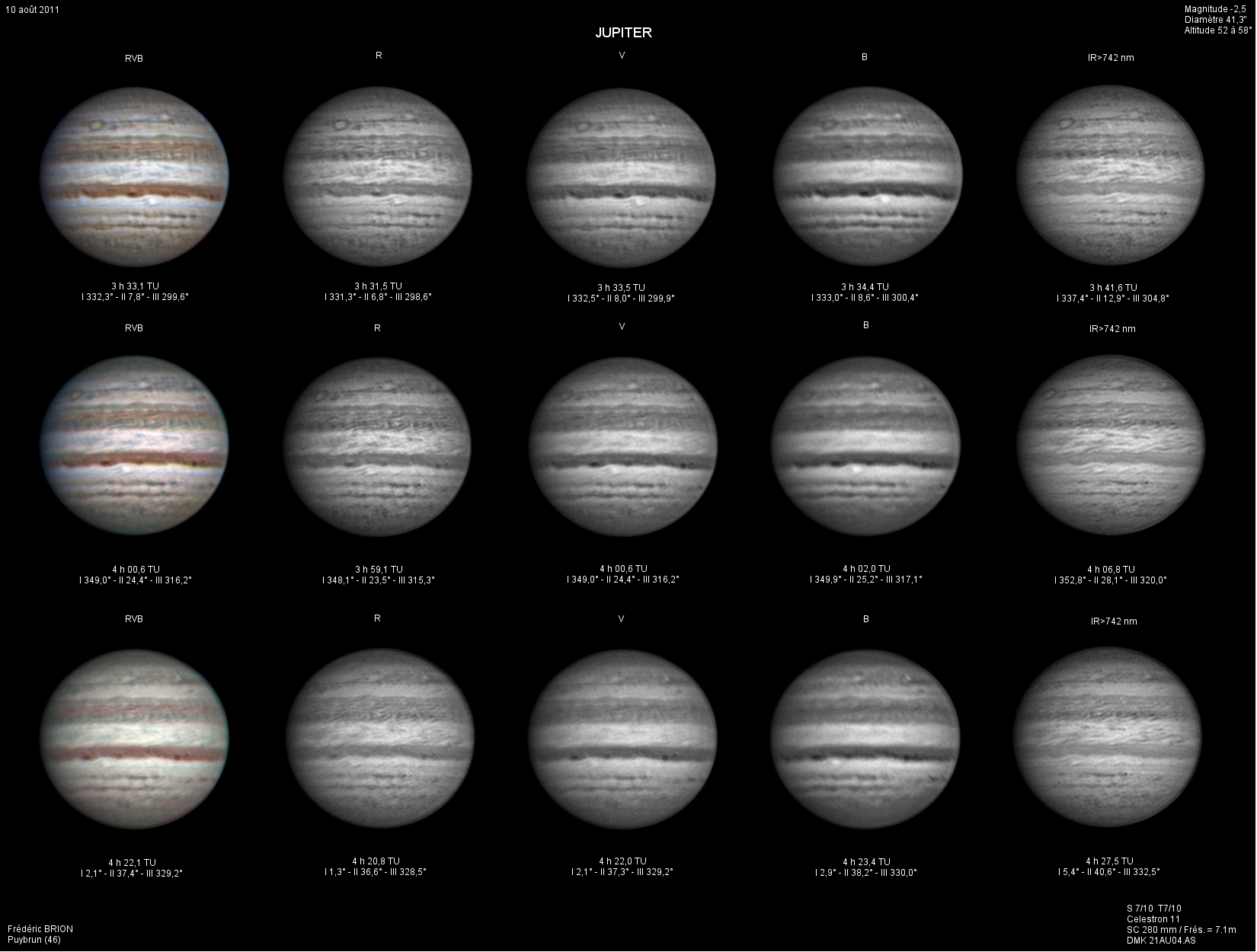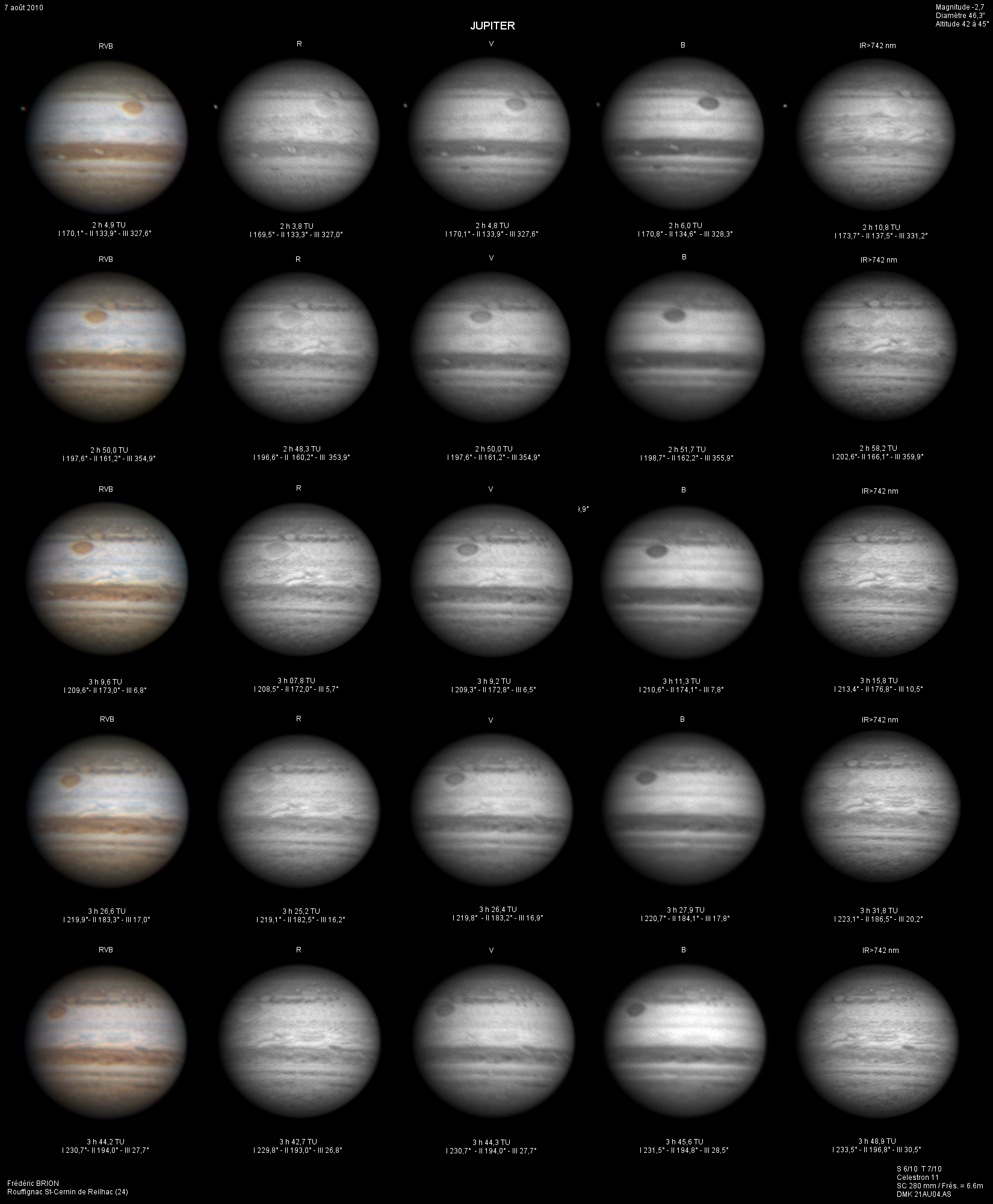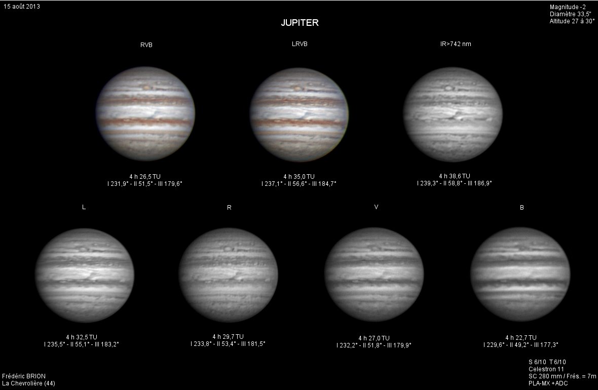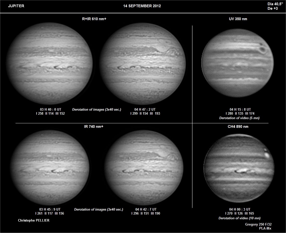 - Paramètres de prise de vue : Films SER réalisés avec filtres IR 742 astronomik + RG610 Baader + CH4 Idas + UV Astrodon + W47 Meade