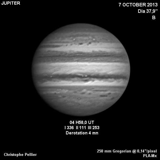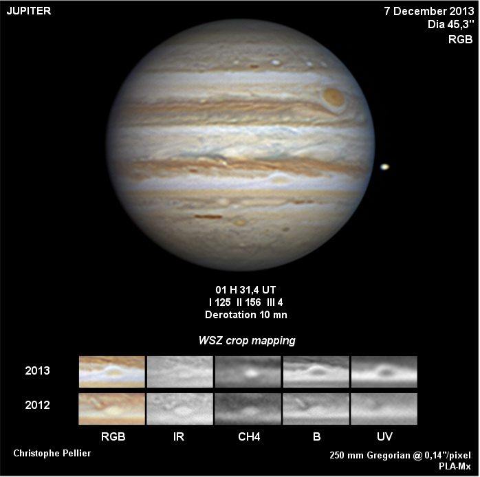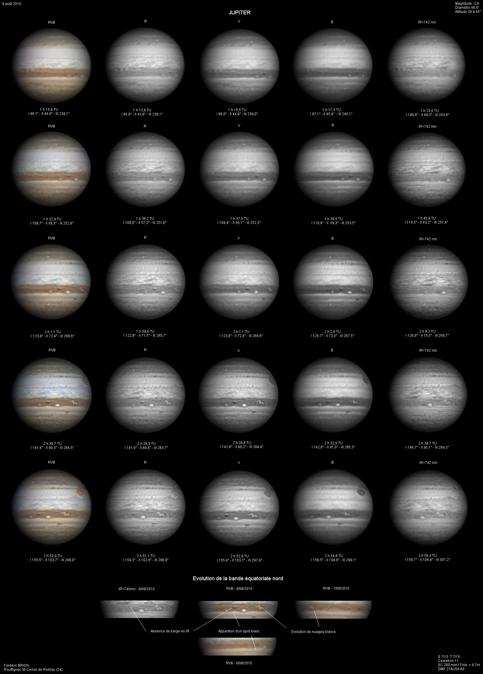 - Commentaire : Ces photos ont été prises quelques jours après l'apparition d'un spot blanc dans la bande équatoriale sud, marquant le début de sa rÃéapparition.