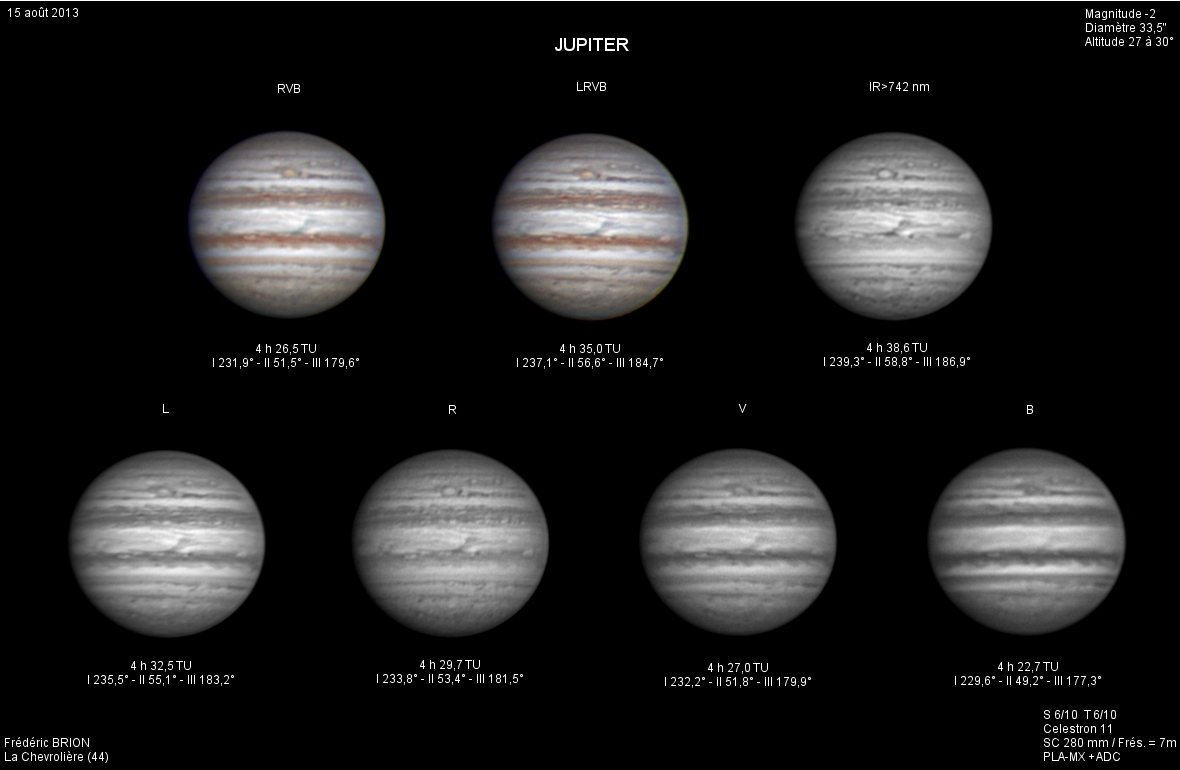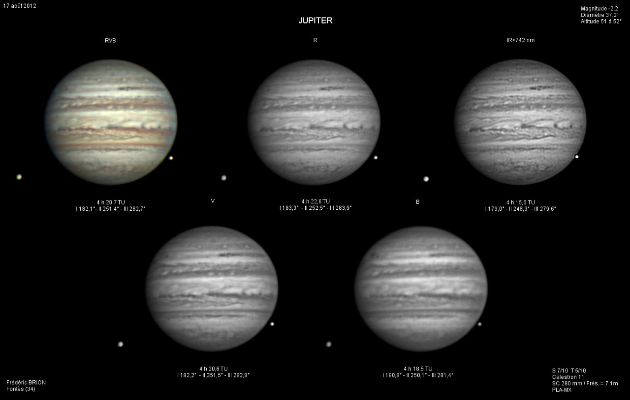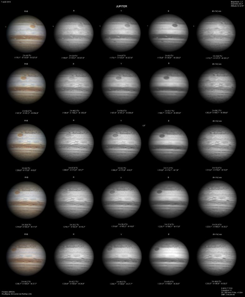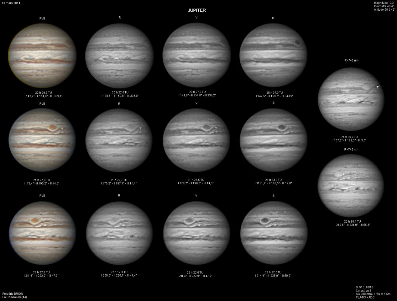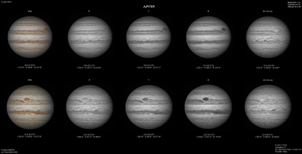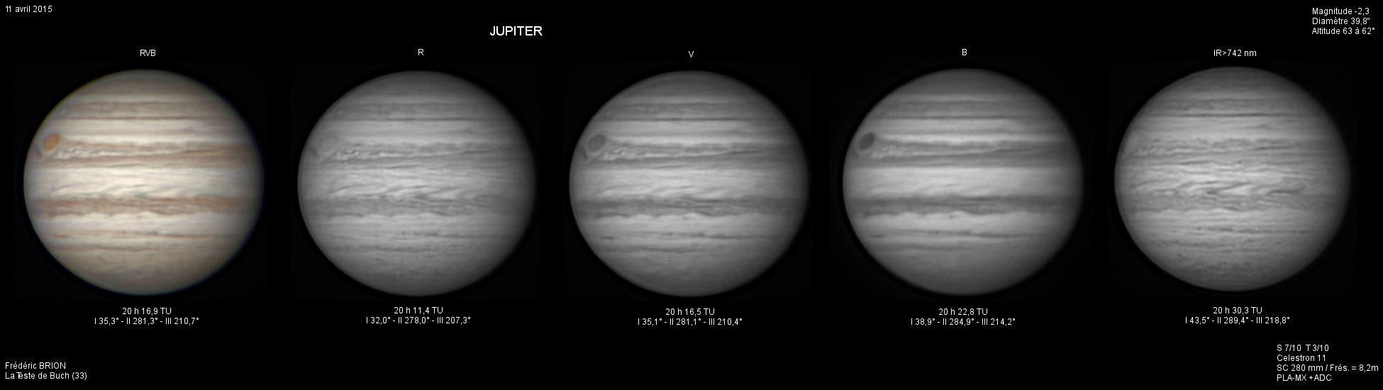 - Paramètres de prise de vue : Films SER réalisés avec filtres LRVB et IR 742 astronomik + CH4 Idas et correcteur de dispersion atmosphérique