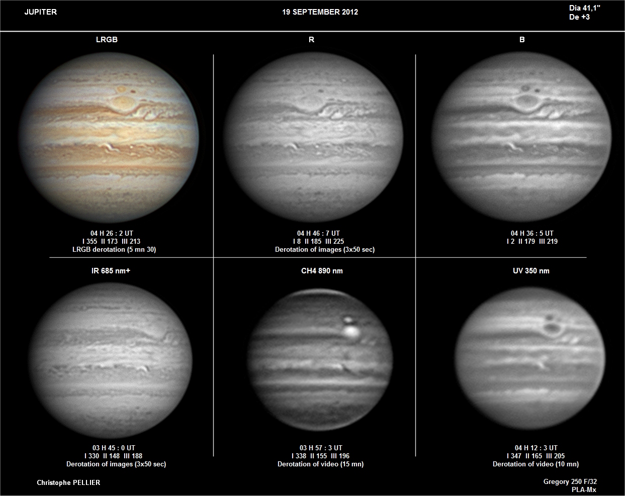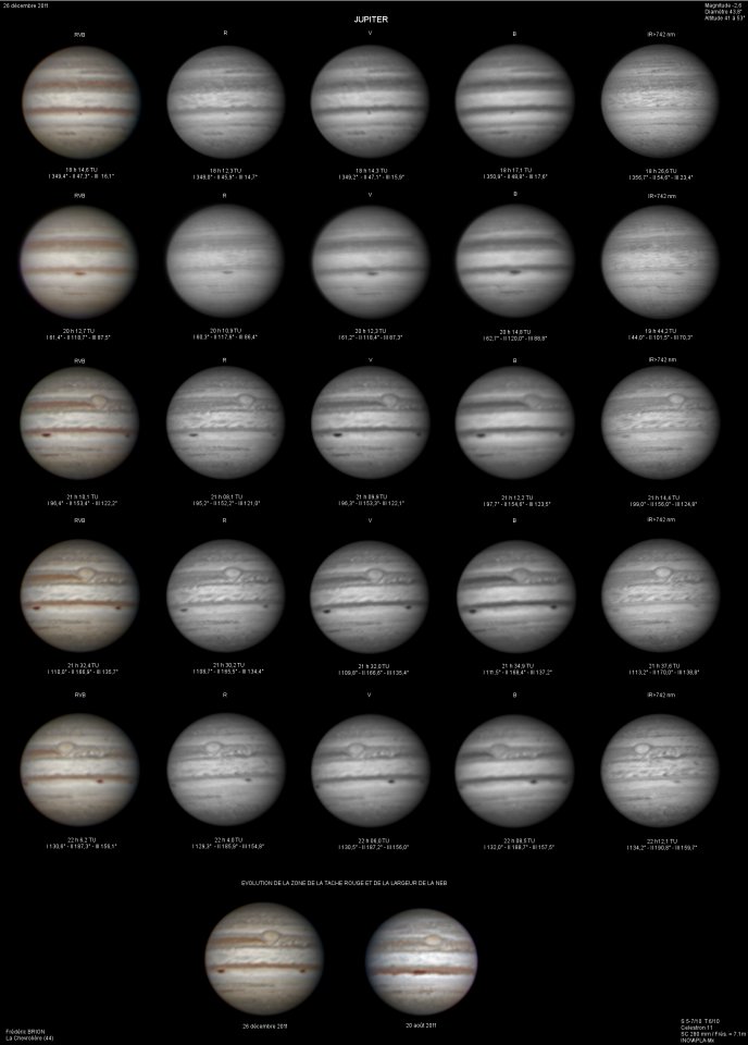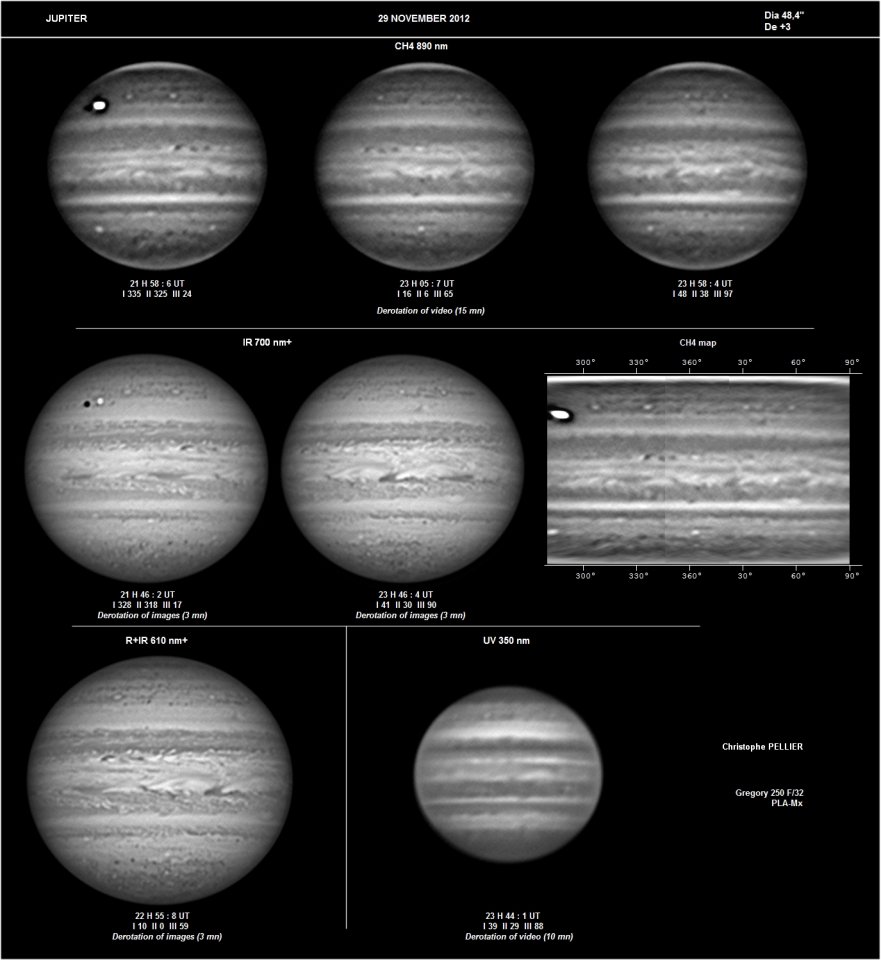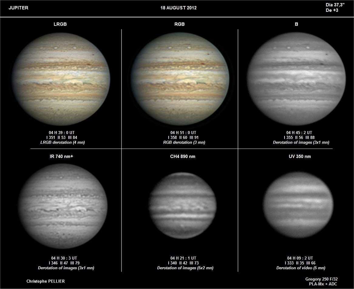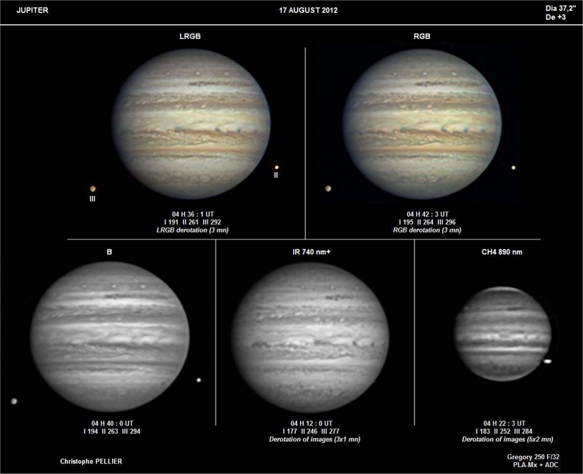 - Paramètres de prise de vue : Films SER réalisés avec filtres LRVB astronomik + CH4 IDAS + UV Astrodon + IR BAADER