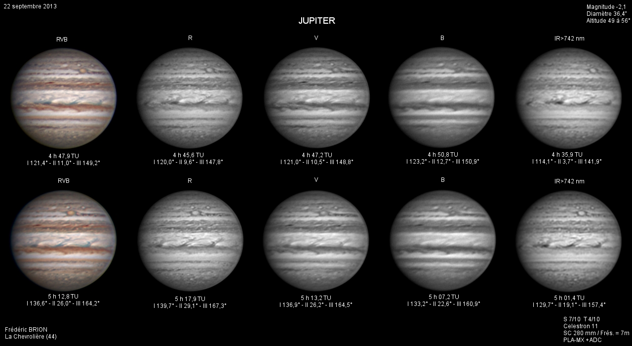 - Paramètres de prise de vue : Films SER réalisés avec filtres LRVB et IR 742 astronomik + CH4 Idas + UV Astrodon et correcteur de dispersion atmosphérique