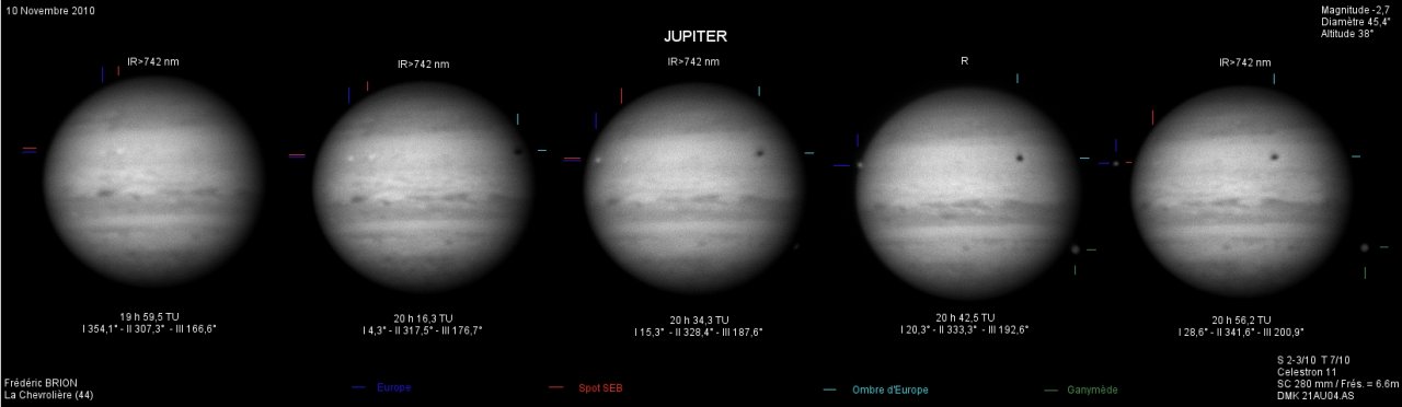 - Paramètres de prise de vue : Films SER réalisés avec filtres IR 742 astronomik + RG610 Baader + CH4 Idas + UV Astrodon