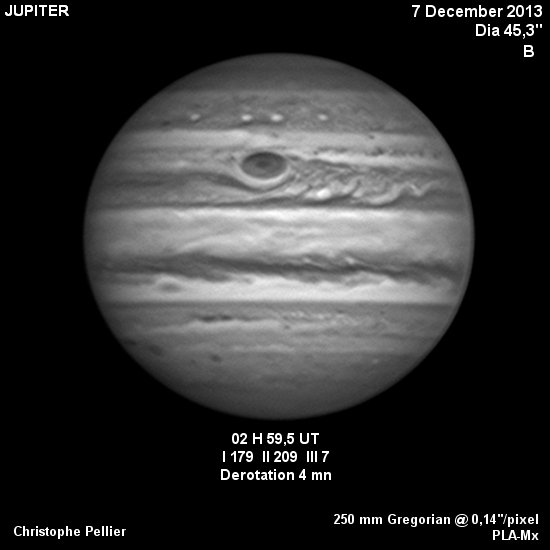 - Instrument et combinaison optique utilisée : Caméra vidéo INOVA PLA-Mx au foyer d'un téllescope Grégory D=250mm F=8000mm