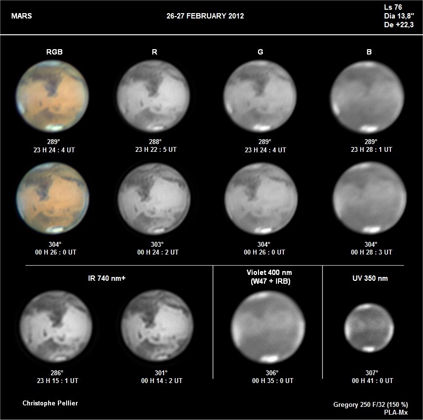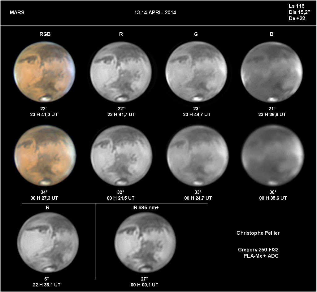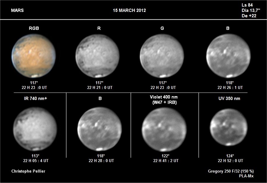 - Paramètres de prise de vue : Films AVI réalisés avec filtres RVB et IR 742 astronomik + W47 Meade + UV Astrodon