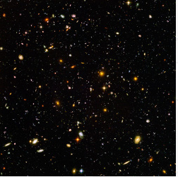 Les galaxies et le monde extragalactique, un voyage à travers le temps et l'invisible Les galaxies sont les briques à partir desquelles l'univers est constitué, elles se situent à la frontière entre les très grandes échelles, où l'univers n'est plus qu'une sorte de fluide quasi-uniforme, et la complexité du royaume des étoiles et de la lumière. La genèse des galaxies est aussi celle du passage des âges sombres, où l'obscurité régnait, à l'ère de la lumière dont les couleurs nous révèlent la composition et l'histoire de ces briques élémentaires de l'univers. Une histoire qui reste encore très incomplète alors que la cartographie tridimensionnelle de l'univers avance à pas de géants. Passer de l'échelle des grandes structures de l'univers à celle des galaxies, c'est aussi passer d'un monde dominé par la seule gravité, à un monde d'une grande complexité, où les quatres forces fondamentales interviennent, mais aussi les composantes « sombres » de notre univers : l'énergie sombre, la matière noire et les trous noirs. | ![]() |